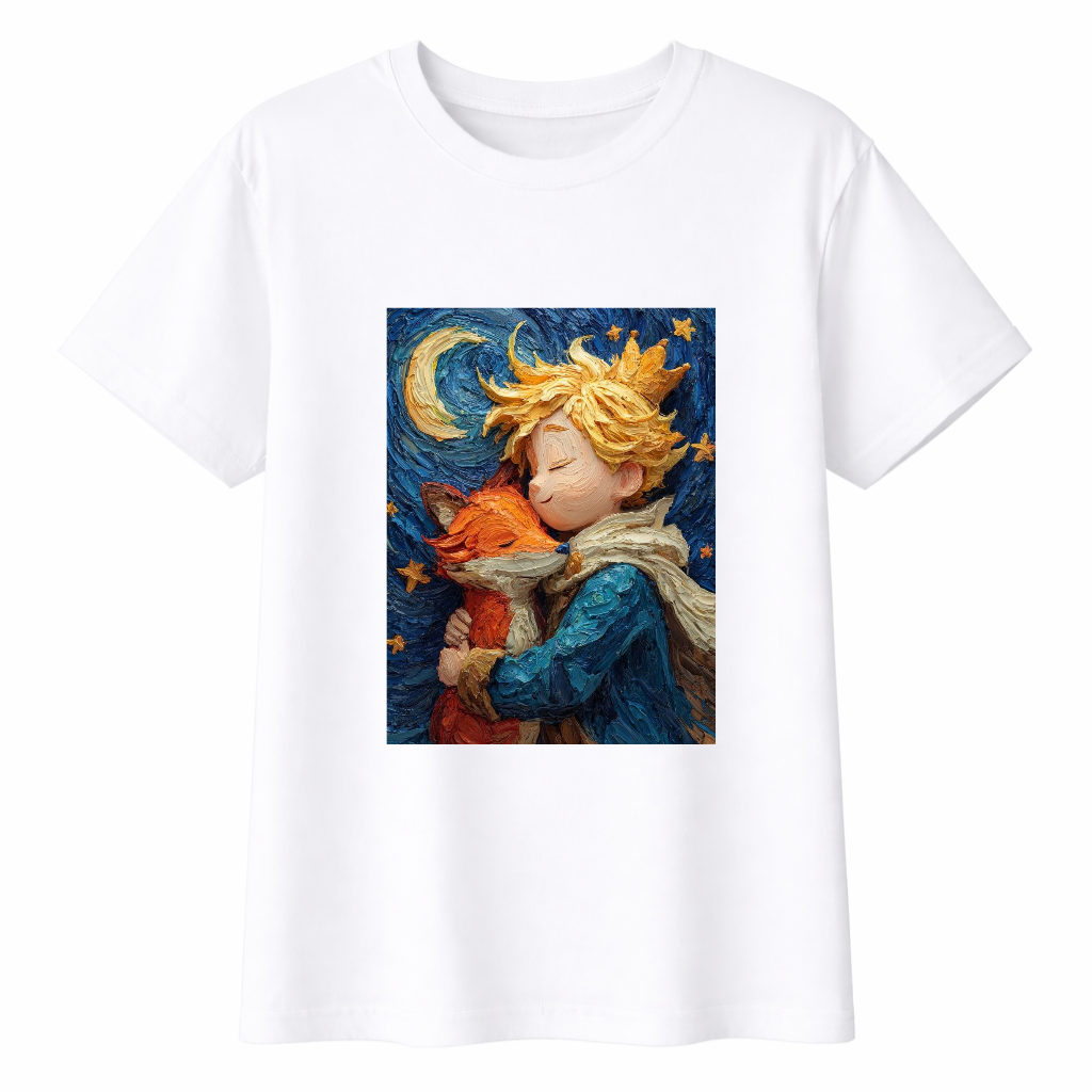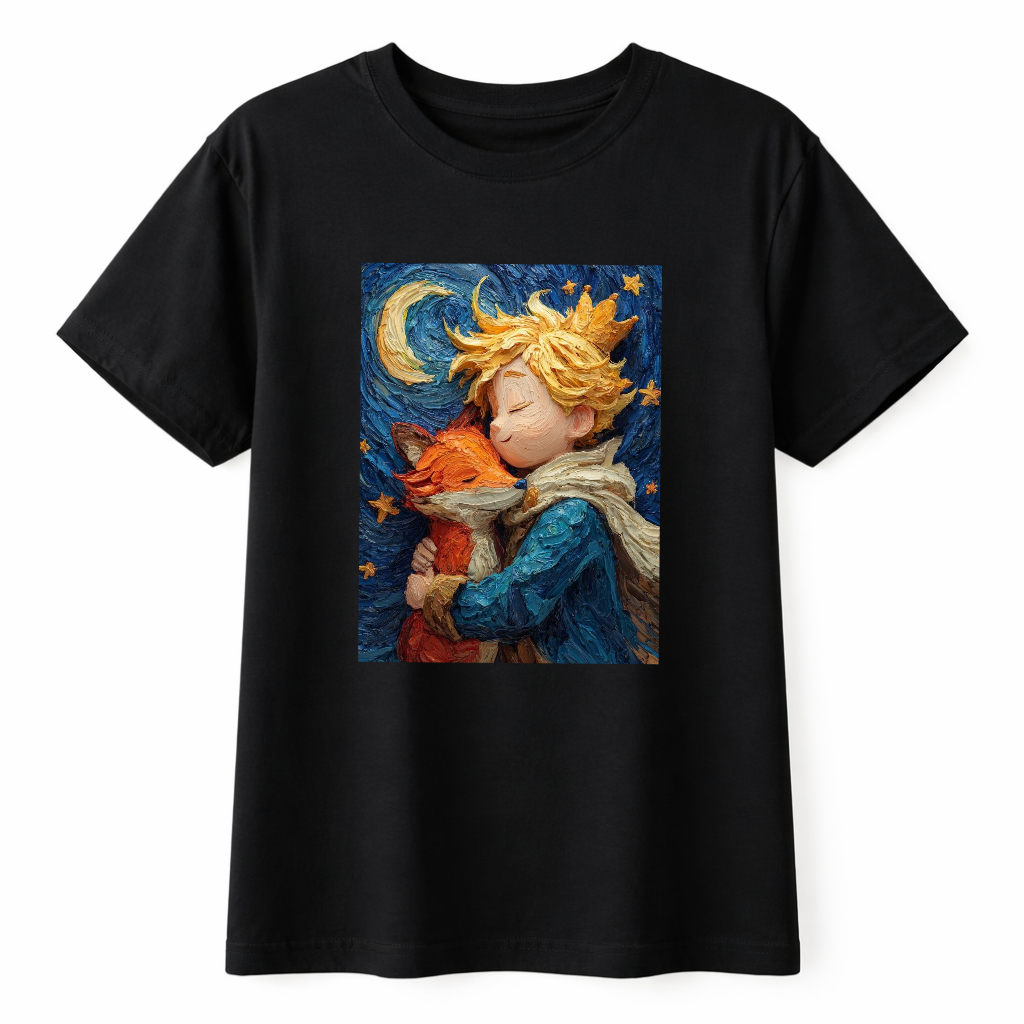 Inspirada en el universo de El Principito, esta remera representa ternura, reflexión y esa mirada simple pero profunda que atraviesa generaciones.