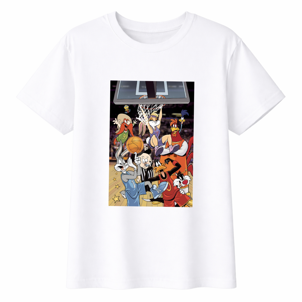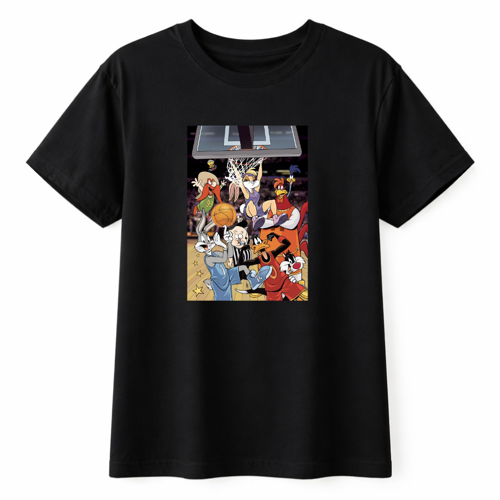 Inspirada en la vibra de Space Jam, esta remera representa esa combinación explosiva entre dibujos animados y deporte que marcó a toda una generación.
